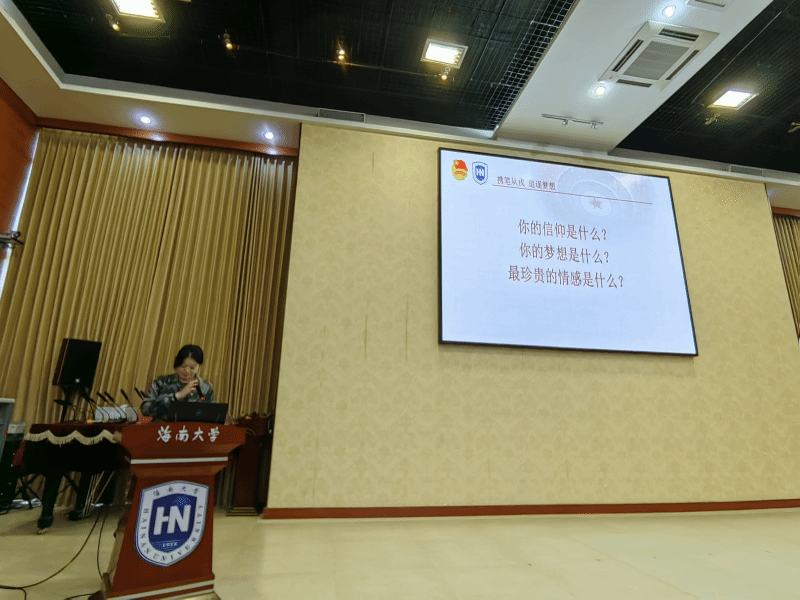 宣讲团成员陈姿珺讲述了自己作为坦克女兵,不爱红装、爱戎装的军旅故事,鼓励在场的同学们勇敢地到军营去磨砺,去奉献中实现自己的人生价值。