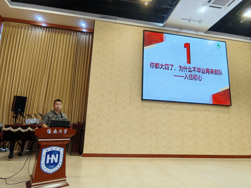 随后,宣讲团成员高书林分享了军旅生活的经历,也详细介绍了应届毕业生光荣服役的优惠政策和广阔前景,号召应届毕业生积极参军报国。