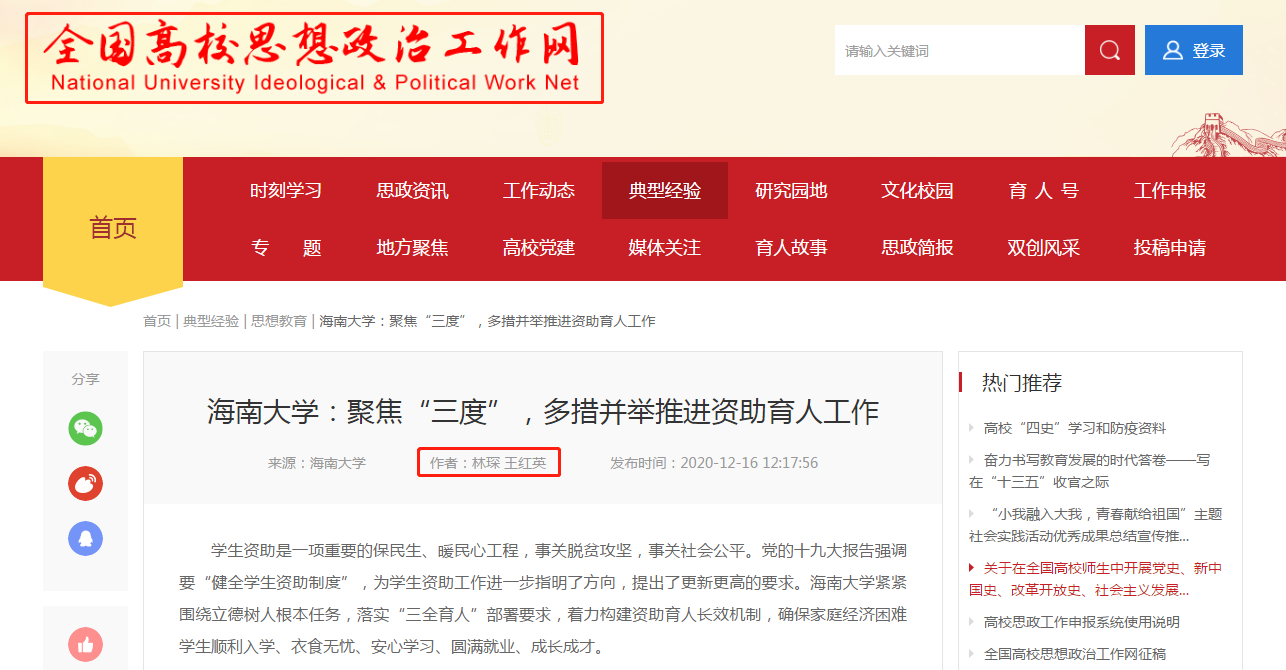 (文章发表在“全国高校思想政治工作网”上的截图)