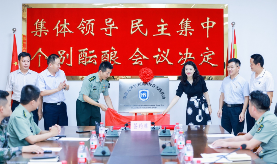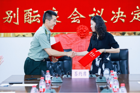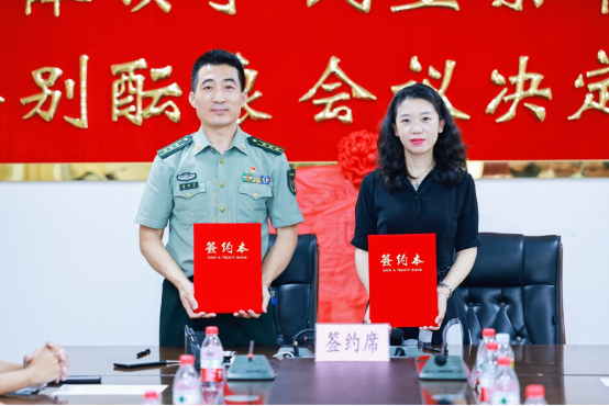 仪式上,刘雨芙部长与谢继军部长签署“pa集团官网学生国防教育实践基地”合作共建协议,并隆重揭牌。