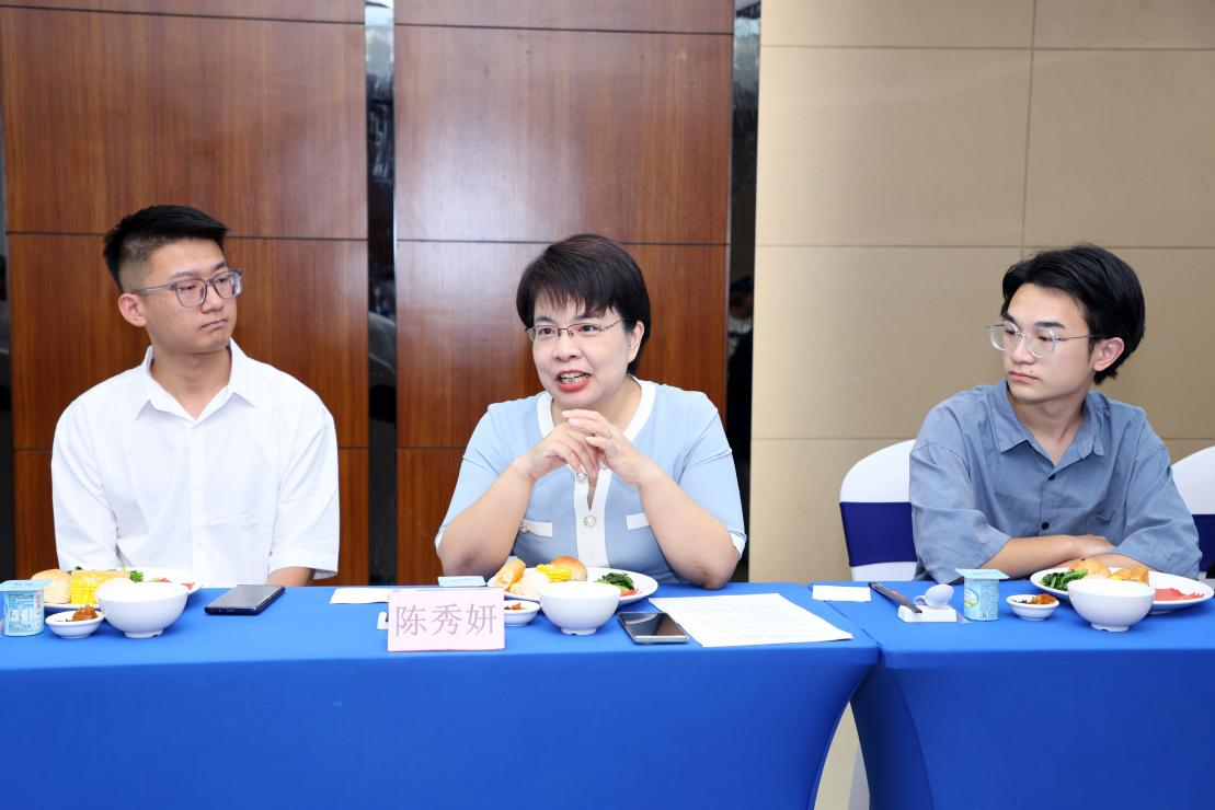 陈秀妍同志认真与毕业生代表们进行互动交流,了解同学们对学校书院制改革以及日常学生教育管理工作的意见建议并就其关注问题进行回应。代表学工系统教育工作者对毕业生们送上祝福,希望同学们带着母校的拳拳关爱,继续传递正能量,以积极的心态拥抱生活与未来,努力实现精彩人生。
