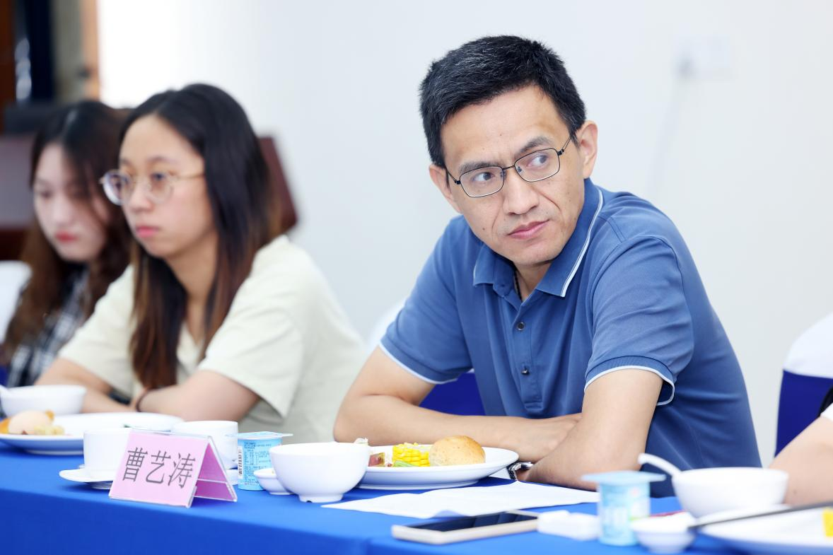 曹艺涛同志倾听同学们的分享,对同学们在就业择业、评奖评优等方面的困惑进行耐心解答。