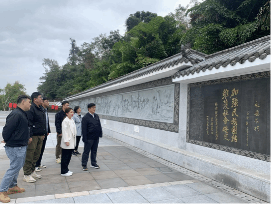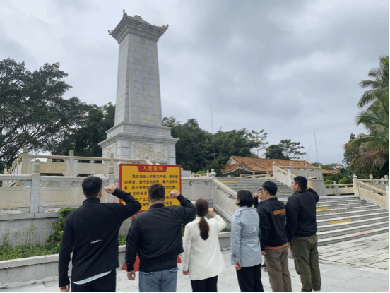 在白沙起义烈士纪念碑园,党员干部们瞻仰了纪念碑。该纪念园始建于1987年,此地是1943年8月12日黎族领袖王国兴、王玉锦领导起义之处,为琼崖抗战和解放战争胜利立下不朽功勋,毛泽东曾高度评价。党员干部们缅怀先烈,随后在宣誓墙前庄严宣誓,重温入党誓词,表示要传承红色精神血脉,为民族复兴努力奋斗、为自贸港建设挺膺担当。