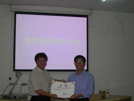 吴蔚东教授代谭世贵校长向彭华研究员颁发聘书