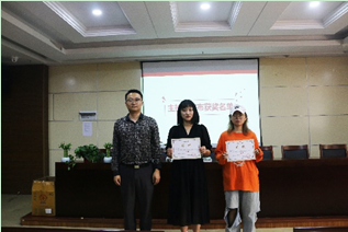 主持人杨燕燕宣读获奖名单。团委书记王文峰及团委学生会主席团为在竞赛中斩获佳绩的同学颁奖并表示祝贺。一等奖获奖同学尚可盈、马金雨发表获奖感言,她们均表示自己的获奖源于老师的辛勤栽培,得益于学院给予的优秀平台。二等奖获奖者吴铁城,虽然他来自于美术设计学院,但被植物知识的魅力吸引的他仍参加了此次竞赛,期望自己以后能够学习更多农科知识。