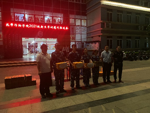 在活动过程中,郑书记和副书记等同志一同慰问了军训教官,表达了学院对他们无私奉献的感恩。同时,学院也为四位同过生日的同学准备了生日蛋糕,并向21级的同学们发放了慰问品。在温馨而愉悦的氛围中,郑书记和副书记为同学们戴上了生日帽,大家一起为四位寿星唱生日歌。