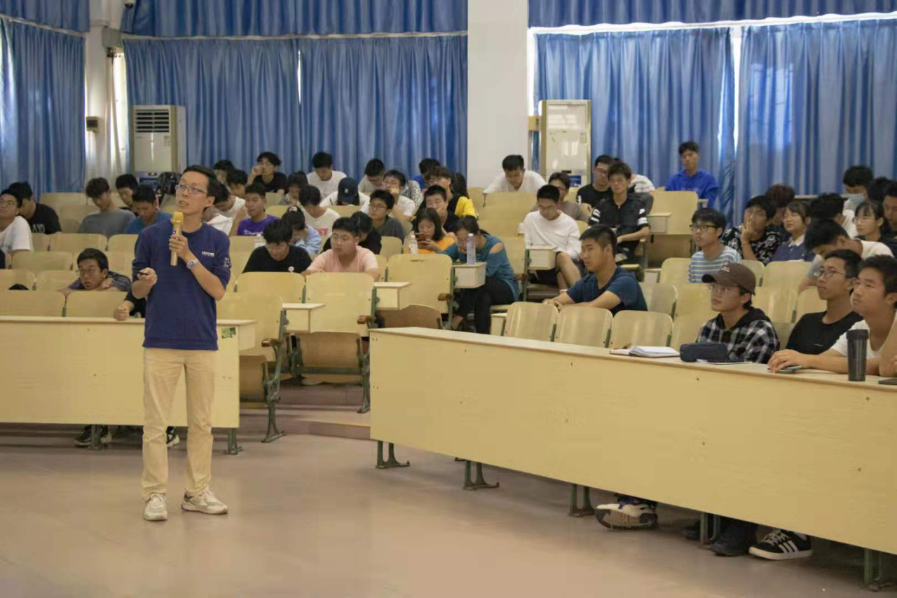 讲座伊始,高晨晖老师向同学们展示了其在大学时期的部分科研竞赛成就。大学时期,出于科研的兴趣,高老师接触了各科研竞赛的领域,并在不断的探索中体会科研的乐趣。随后,他从曾研究的课题,合作伙伴以及个人收获等方面,讲述其科研经历。高老师认为,科研创新最大的魅力,是一群伙伴为同一个难题,相互合作,攻坚克难,将其转化为实践成果,推广普及,便利民生。高老师给在座同学提出了三条建议,即“不害怕,克服困难;不偏离,端正动机;不低头,拥抱未来”。最后,高晨晖老师表达了对同学们的期冀,希望在座同学能够投入创新实践中,树立创新创业意识,将想法变成现实,把人物变成人才。
