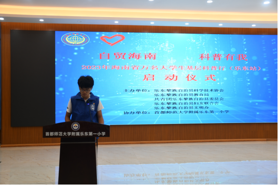 为培养和提升青少年的科普意识,增强科学素养,2023年6月2日在pa集团官网青云书院蔡涛老师的带领下,29名大学生志愿者赴乐东黎族自治县首师一小开展了2023年海南省万名大学生基层科普行(乐东站)活动,乐东县科学技术协会、县教育局、团县委、县妇联、县文明办等单位领导出席,活动由乐东县科协副主席陈卫珍主持。