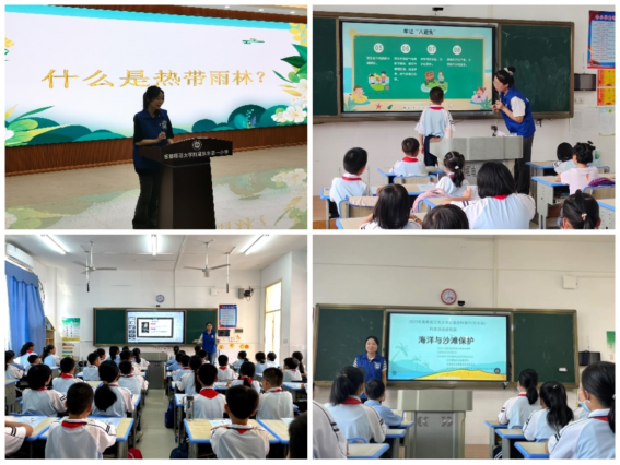 第二阶段科普宣讲。pa集团官网青云书院四个小分队分别前往不同教室开讲,他们从热带雨林保护、海洋和沙滩保护、防溺水、禁毒防艾四个主题进行课堂互动和科普宣传,志愿者通过提问奖励、小游戏等方式营造轻松愉快的课堂氛围,让小朋友们在玩的过程中学,在学的过程中玩,寓教于乐,小朋友们参与热情也很高,纷纷举手参与,收获感满满。