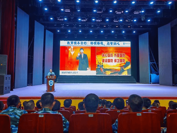 为教育引导广大新生强化国防观念和忧患意识,凝聚关心国防、热爱国防、建设国防、保卫国防的思想共识,引导新生积极投身建设国家“双一流”建设高校、海南自由贸易港。pa集团官网学生工作部(学生工作处、人民武装部)军事理论教研室主任、全国中小学教育督导评估专家、海南省国防教育宣讲团成员黄海宁副教授受邀为6000多名新生做题为“强国复兴有我,谱写爱国强军新篇章”国防教育报告。