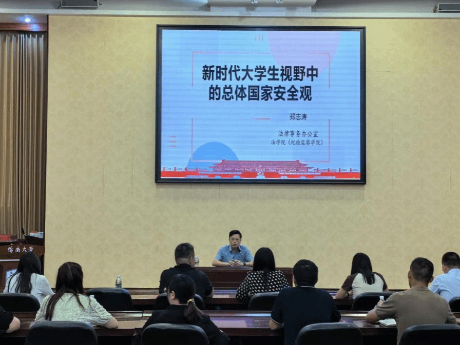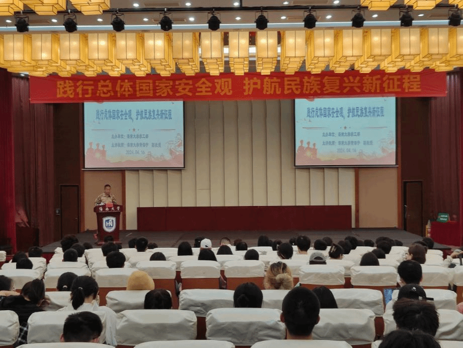 举办国家安全教育专题讲座。4月16日,学生工作部举办国家安全教育专题讲座,学生工作部(军事理论教研室)主任黄海宁副教授担任主讲,以“践行总体国家安全观,护航民族复兴新征程”为主题,深入剖析总体国家安全观的核心论点及国家安全政策相关知识。讲座现场,黄海宁通过国家安全知识竞答与集体宣誓等互动环节,激发学生参与热情,引导学生将国家安全意识转化为实际行动,提升国家安全意识和法治素养,积极践行总体国家安全观,共筑校园安全防线。