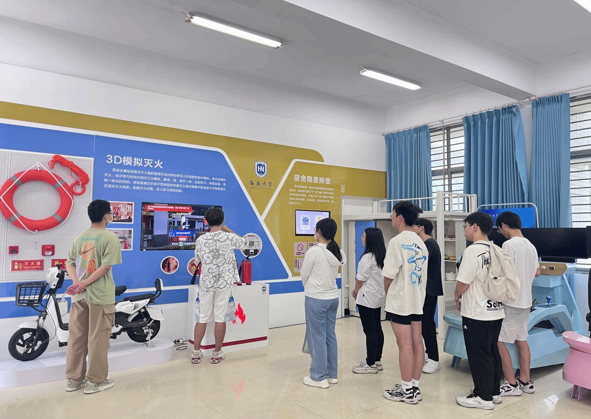 讲解员向同学详细介绍了场馆内设置的总体国家安全观学习、安全知识竞答、交互式反诈体验、智能急救响应、防范“套代购”走私等多个学习系统,内容覆盖国家安全、人身财产安全、宿舍安全、消防安全、反走私法治教育等多个领域。