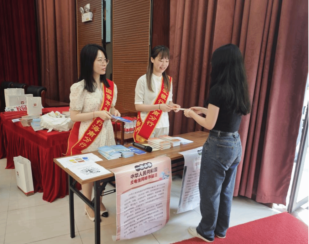 讲座开始前,国家开发银行的工作人员向同学们分发《生源地信用助学贷款还款指南》《生源地信用助学贷款申请指南》等学习资料,并积极宣传反电信网络诈骗法等知识。