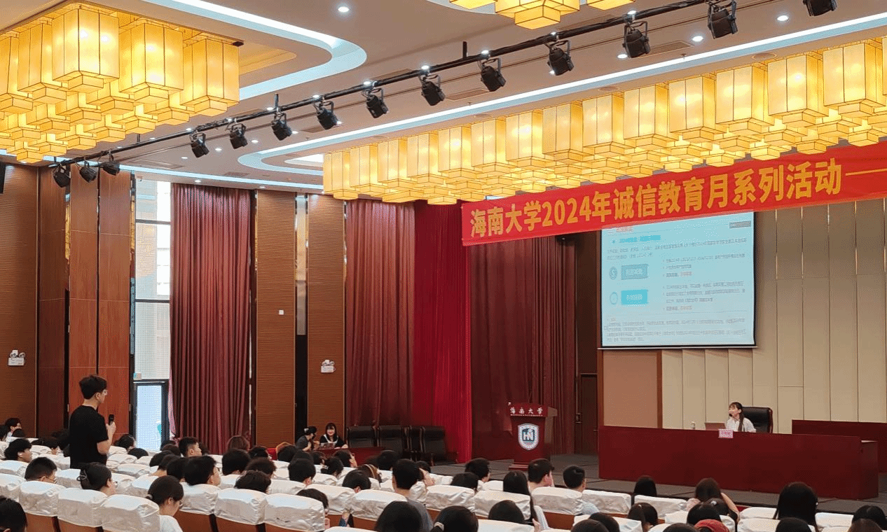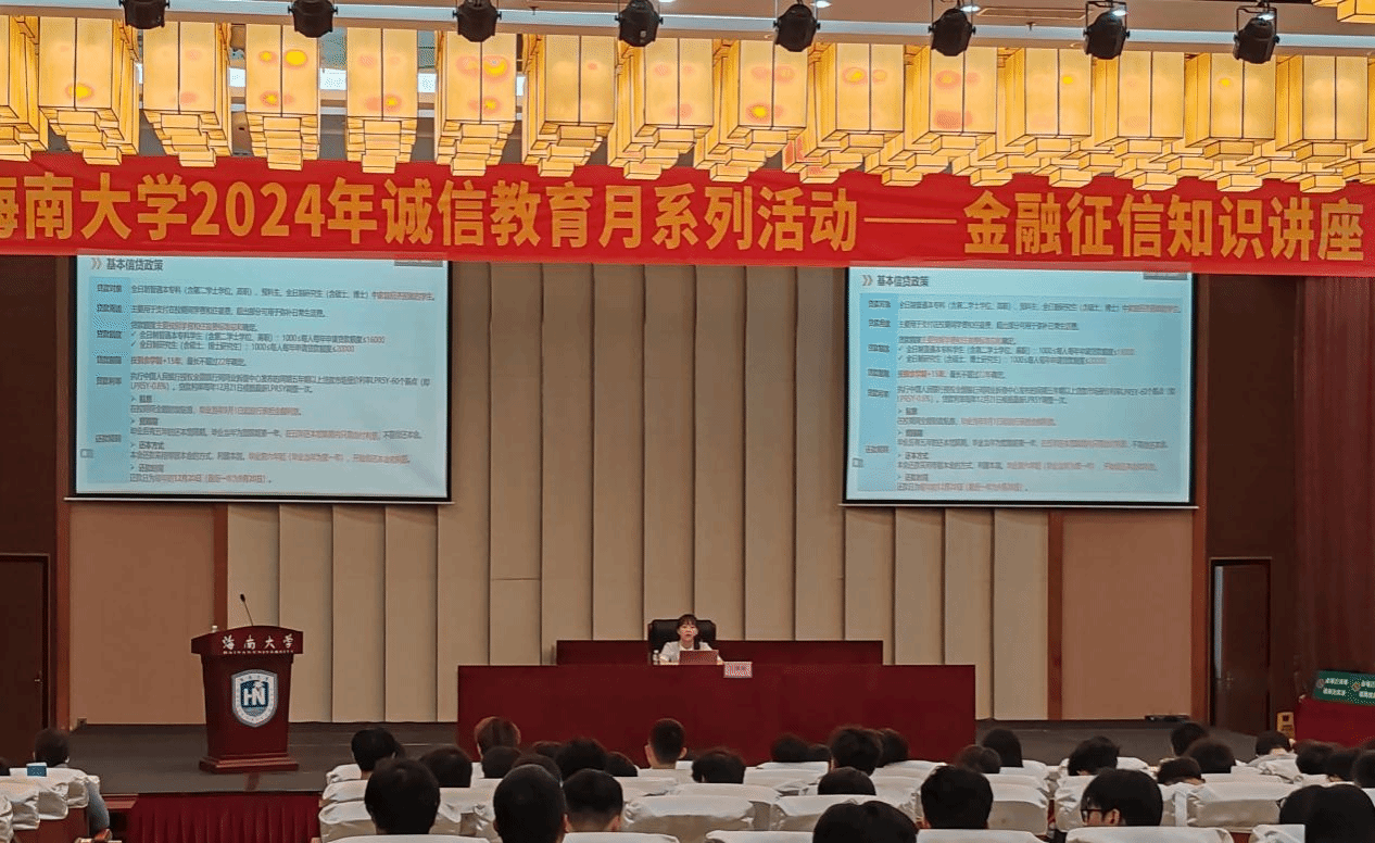 2024年5月23日,pa集团官网2024年学生资助诚信教育主题活动——金融征信知识讲座在社科楼二楼报告厅顺利举办。本次讲座邀请了国家开发银行海南分行经理王靖榆为同学们普及金融征信知识,以“线上+线下”的方式同步进行,海甸校区11个书院师生代表近260人在主会场参与学习,其它校区5个书院师生代表在线上参加。