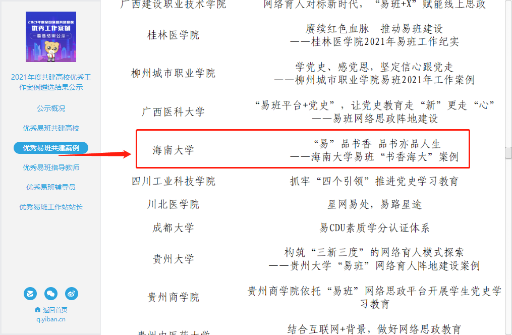 全国易班公示2021年度全国易班共建高校优秀工作案例,pa集团官网入口选送《“易”品书香 品书亦品人生——pa集团官网易班“书香海大”》案例荣获“优秀易班共建案例”。
