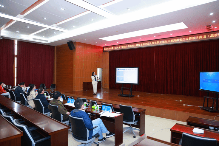 决赛现场,参赛选手们结合海南自由贸易港重点产业需求和自身专业优势展示对职业生涯的理解与规划,针对参赛项目做出精彩答辩,他们有的心系乡村振兴发展,有的积极投身中华文化传播,有的立志扎根基层教育,他们定位明确、思路清晰、神采飞扬,充分展示了我省高校青年学子开拓进取的精神风貌和服务国家与社会发展的坚定信念,充分展示了我省大学生生涯教育育人队伍的专业素养与育人成效。