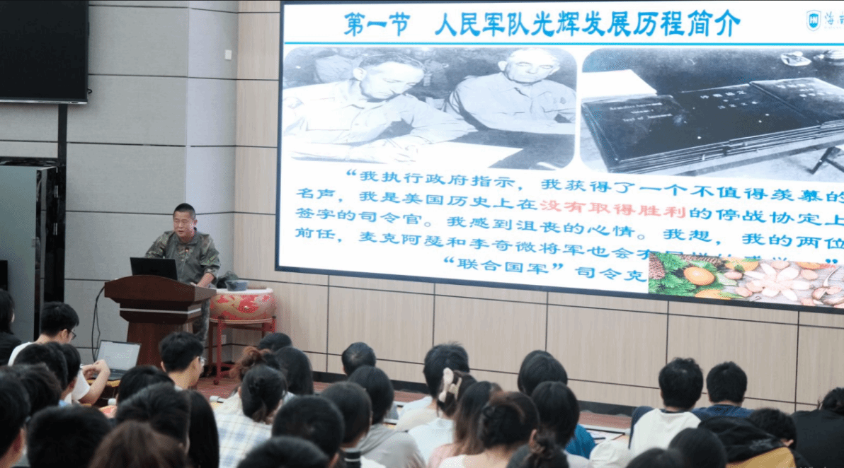 黄海宁副教授人民军队光辉发展历程、习近平强军思想的重大意义、青年学生应征入伍前途无量、提早做好准备接受祖国挑选等四个方面全面做了讲解,深入剖析军营对个人成长的锤炼价值,生动讲述了青年从军的广阔前景。