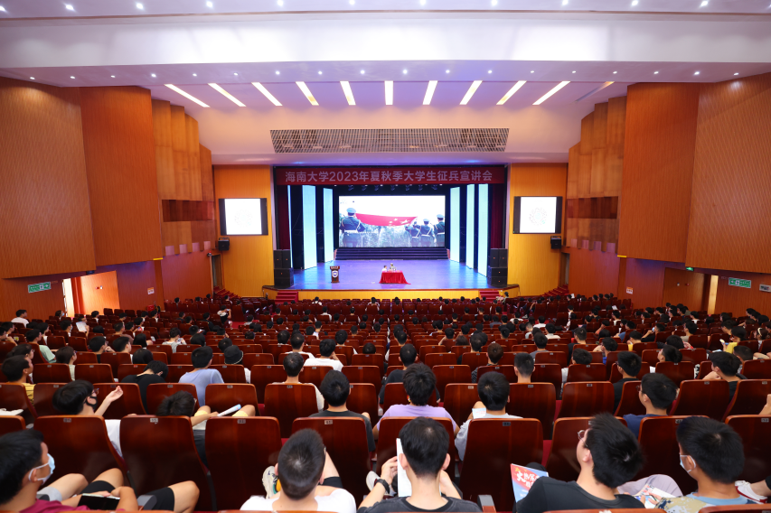 2023年4月28日上午,pa集团官网在学校思源学堂大礼堂组织 2023年度夏秋季征兵工作宣讲会,海甸校区、儋州校区、城西基础教学部近400名师生参加。