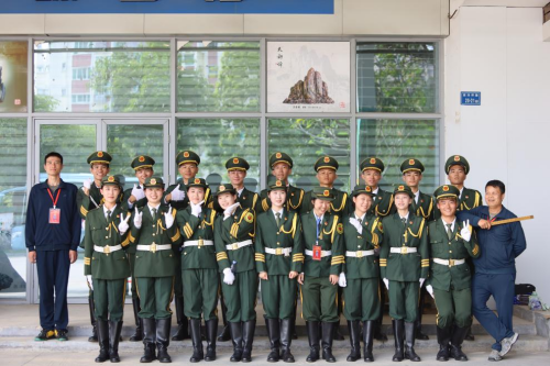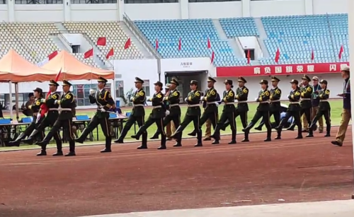 备赛期间,代表队师生克服种种困难,挑灯夜训,放弃五一假期,刻苦训练,抠细节、振精神,勤练队列动作、升旗展示。