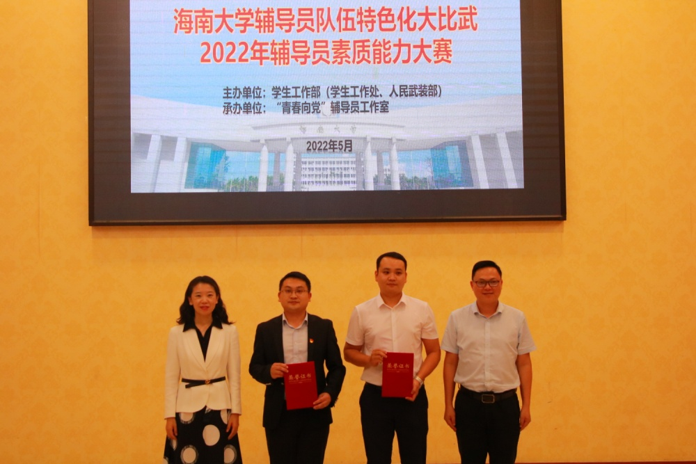 5月8日上午,由pa集团官网学生工作部(学生工作处、人民武装部)主办、“青春向党”辅导员工作室承办的pa集团官网2022年辅导员素质能力大赛在思源学堂多功能厅落下帷幕。海南省教育厅党委办公室主任周晓东,琼台师范学院副院长林琛,pa集团官网机电工程学院党委书记黄国标、体育学院党委书记陈卫东、药学院党委书记胡静、pa集团官网学生工作部(学生工作处、人民武装部)副部(处)长李昌郁分别担任两天赛程的评委,pa集团官网学生工作部(学生工作处、人民武装部)部(处)长刘雨芙、副部(处)长欧建猛、副部(处)处长曹艺涛出席比赛,各书院辅导员现场观摩。