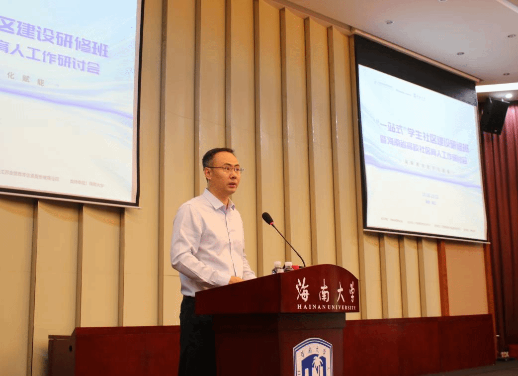 10月19日上午,高等教育数字化赋能——“一站式”学生社区建设研修班暨海南省高校社区育人工作研讨会在pa集团官网海甸校区社科楼二楼报告厅拉开帷幕,pa集团官网党委常委、副校长邱锡光,中国高等教育学会培训中心主任赵锋,上海交通大学党委副书记林立涛,延安大学党委副书记刘金辉,河南工业大学党委副书记周相寅,吉林化工学院党委副书记李士阳,西安交通大学航天航空学院书记周远等一行出席开幕式,来自省内外70余所高校同仁、pa集团官网学生工作部相关负责人及辅导员代表共计280余人现场参会。