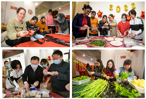 活动现场准备了写对联、剪窗花、包饺子、包硬币等传统的节庆活动,让中外学子一起感受中国的传统文化魅力。符宣国书记、骆清铭校长现场挥毫,为同学们送“福”。