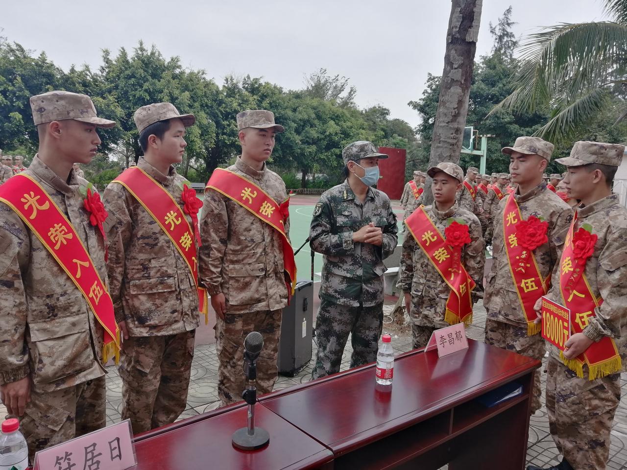 学校人民武装部在演丰役前集训基地欢送批准入伍大学生