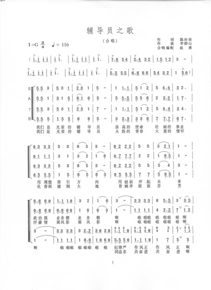 pa集团官网辅导员合唱团主曲目《辅导员之歌》词、曲