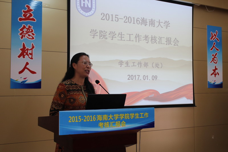 //www.hainanu.edu.cn 学校党校王志芳校长对本次汇报会进行点评,她赞扬了各学院的汇报充分展示了各学院的风采和亮点工作。她以“规定动作做得好,自选动作有亮点”概括了18个学院的学生工作汇报内容。她指出汇报会为各学院汇总经验、找出差距提供了交流平台,并提出三点意见建议:一是各学院要加强思想引领、有针对性地开展大学生思想政治教育。二是要加强工作研究,针对工作中的热点、难点问题积极开展调查和理论研究。三是工作考核最好围绕关键指标准确量化,重点突出。//www.hainanu.edu.cn