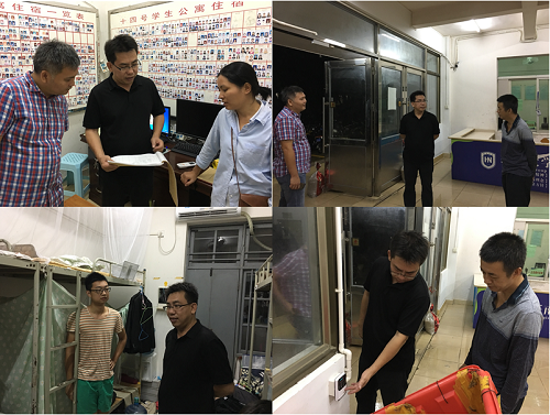 为迎接党的十九大胜利召开,进一步加强学生宿舍安全管理,10月17日晚,学生工作处(部)陈卫东处长率队走访学生宿舍。