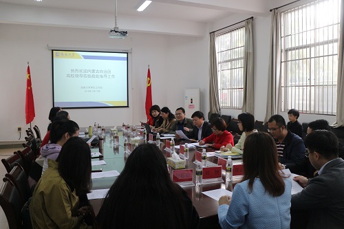 学生工作处(部)俞花美副处长向来宾们简要介绍了学校辅导员队伍及学生管理工作的情况。