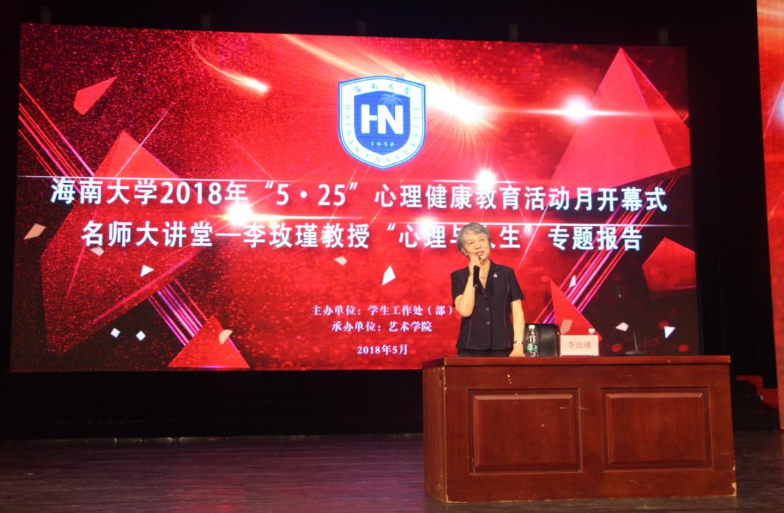 李玫瑾教授为师生作“心理与人生”的专题报告,她从心理健康的重要性、心理迷失的发生、发展规律以及自我心理调节方法等方面给大家深入浅出地分享了实用的心理专业知识。报告中,李玫瑾教授融入自己亲身经历和感悟,运用马加爵案例探讨了人生的意义在于人间有真情,巧妙地引导学生要珍惜生命、感恩父母的养育。 整场报告座无虚席,师生热情高涨,多次情不自禁地响起热烈掌声。 学生工作处(部)相关负责人,各学院副书记、心理健康教育中心全体老师以及各学院师生代表1000余人参加了开幕式。 李玫瑾,中国人民公安大学教授、博导,中国心理学会认证的心理学家,中国预防青少年犯罪研究会副会长,中国心理学会法律心理学分会副会长等。曾获得北京市教书育人先进个人称号,北京市师德先进个人称号,北京市高校教学名师奖等。她经常做客于央视的《今日说法》,曾在央视《开讲啦》、凤凰台的《世纪大讲堂》等栏目做演讲嘉宾。