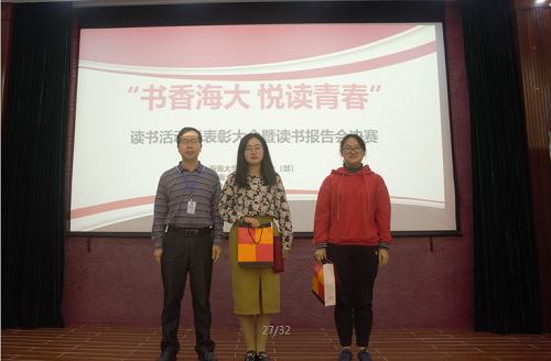 //www.hainanu.edu.cn 最终海洋学院张瑜同学以高分拔得头筹,人文传播学院骆心怡、材料与化工学院胡渝获得二等奖。本次大赛还表彰了“微小说接龙”“阅有故事的人”“图书漂流”“阅读之星”“书香班级”等奖项的获奖者,由学生工作处(部)陈卫东处长、图书馆李文化馆长等嘉宾、评委为获奖者颁奖。