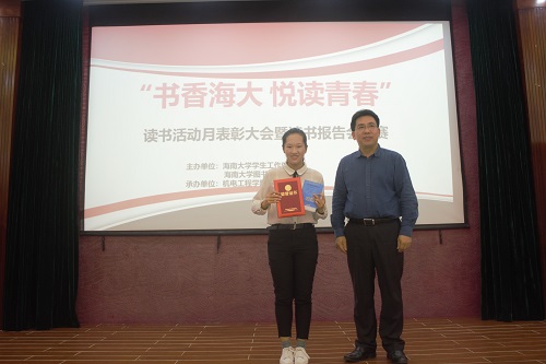 12月18日下午,由学生工作处(部)和图书馆联合举办,机电工程学院承办“书香海大 悦读青春”读书活动月表彰大会暨读书报告会决赛在图书馆五楼报告厅举行,学生工作处(部)处长陈卫东、图书馆馆长李文化、校团委副书记俞花美、机电工程学院党委副书记李宏,各学院负责读书活动月指导老师出席活动。//www.hainanu.edu.cn