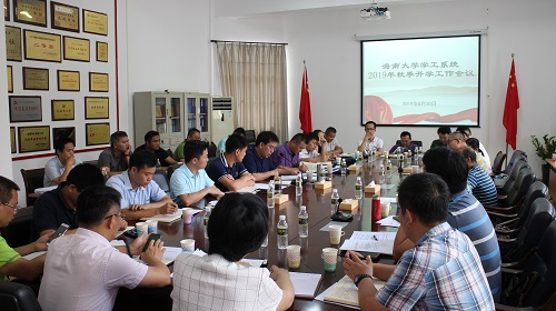 //www.hainanu.edu.cn 陈卫东部(处)长传达了学校党委关于学生工作的指示精神,并就近期学生工作重点事项进行部署。他强调,一是学生工作应坚持以学生为本,围绕学校人才培养目标,“刀刃向内,自我革命”,积极思考与推动学生工作内容、方式创新;二是一定要把包括迎新、新生军训、入学教育在内的各项学生工作抓实抓细,确保学生身心不出事,维护校园安全稳定;三是要进一步加强学工队伍管理,提高学工队伍综合素质能力,促进学工队伍切实发挥作用;四是要加强学生工作的协调沟通,做到不留死角,确保各项教育管理工作落实到位。以坚定的信念和昂扬的斗志打好开学第一战,为新中国成立70周年献礼!//www.hainanu.edu.cn