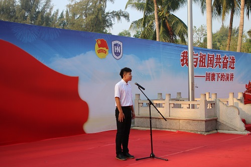 升旗仪式结束后,同学们在国旗下讲述着“我与祖国共成长”、“我与祖国共奋进”的故事,深深地感染着现场的师生。