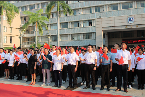 为隆重庆祝中华人民共和国成立70周年,9月29日上午,pa集团官网在行政楼门前举行青春告白祖国系列活动之“同升国旗 同唱国歌”,同庆祖国母亲70华诞。pa集团官网副校长梁谋出席活动,党建特邀组织员、校团委、学生工作部(处)相关负责人和各学院师生代表参加活动。