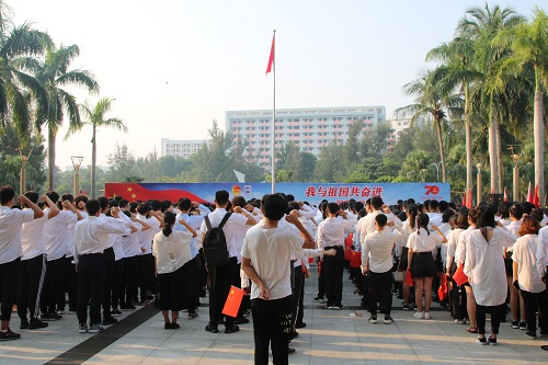 仪式的最后,在场的师生们高歌同唱《我和我祖国》,以歌表达自己对党对国家的热爱,共同凝聚不忘初心、牢记使命、砥砺奋进的青春信念与力量,同祝祖国母亲70华诞生日快乐!
