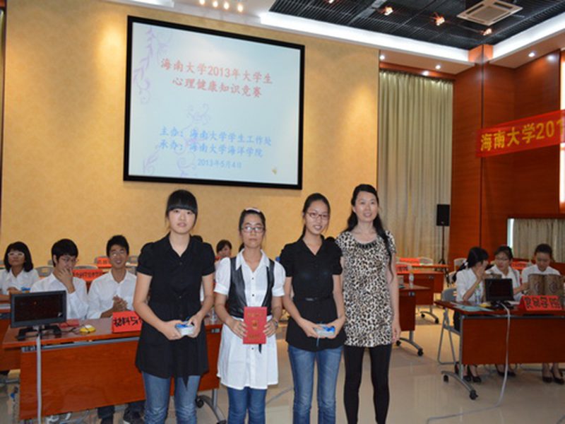 2013年5月4日下午,由pa集团官网学生工作部(处)主办、海洋学院承办的pa集团官网2013年大学生心理健康知识竞赛在思源学堂一楼多功能厅成功举办。校学生处韩力光副处长、吴九君老师、竭婧老师、机电工程学院崔建兵老师、经济与管理学院王昌纯老师、环境与植物保护学院田凌溪老师、应用科技学院(城西校区)葛雯菱老师、人文传播学院王俊延老师、海洋学院李丽老师、郭孝伟老师共同出席此次活动。来自pa集团官网入口16个学院的48位同学及亲友团成员代表各自学院参加了本次竞赛。