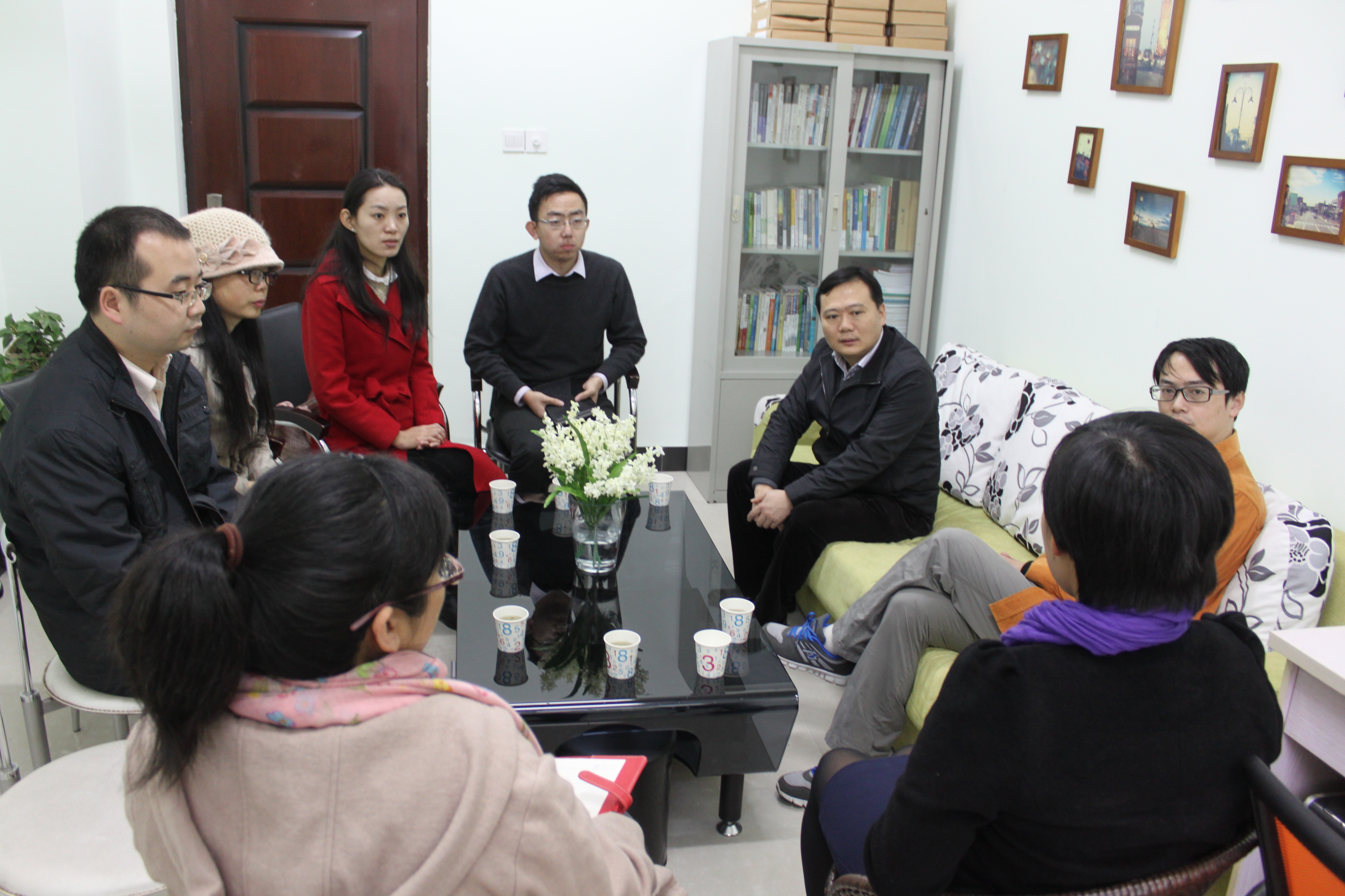 北京大学心理健康教育与咨询中心副主任、总督导徐凯文博士应邀来pa集团官网入口开展冬季小学期课程的讲授,借此宝贵机会,pa集团官网入口心理健康教育中心邀请他与pa集团官网入口部分心理辅导员一起举行了座谈会。座谈会于2014年1月14日上午8点半在经济与管理学院心理咨询室举行,学生工作部(处)韩力光副部长、心理健康教育中心吴九君主任、竭婧副主任、汪蕾老师参加了会议。参会的还有来自外国语学院、法学院、园艺园林学院以及经济与管理学院的四位心理辅导员老师。