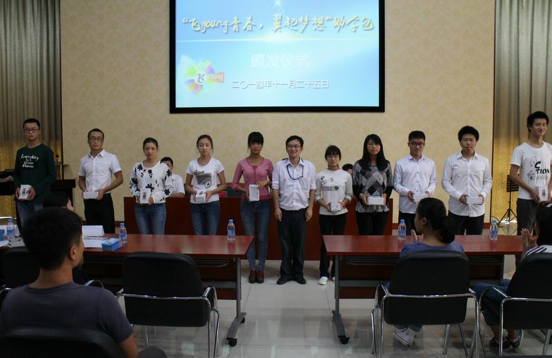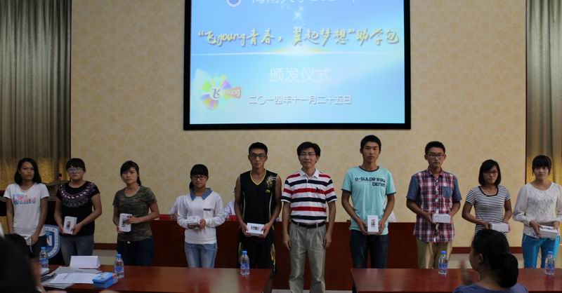 pa集团官网2014年“飞young青春,翼起梦想”助学包颁发仪式于2014年11月25日下午在pa集团官网思源学堂多功能厅隆重举行。中国电信海口公司副总经理吴敏、中国电信海口公司校园客户部总监郝慧晶、pa集团官网学生工作部部长符成彦出席了此次仪式并为受助学生代表颁发了助学包。仪式由pa集团官网学生工作部学生助学贷款与资助科科长欧建猛主持。