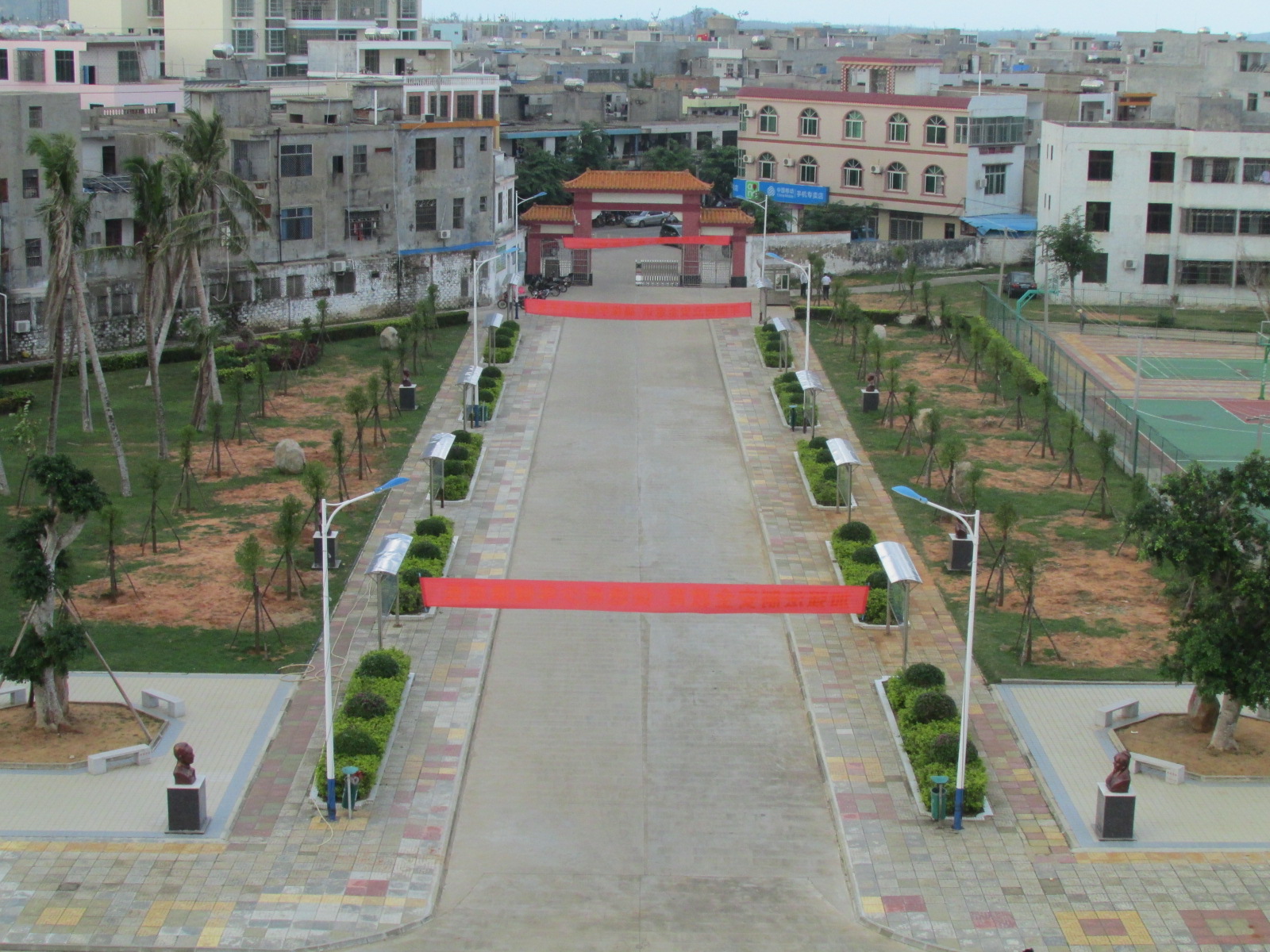 翁田中学焕然一新的主校道景观