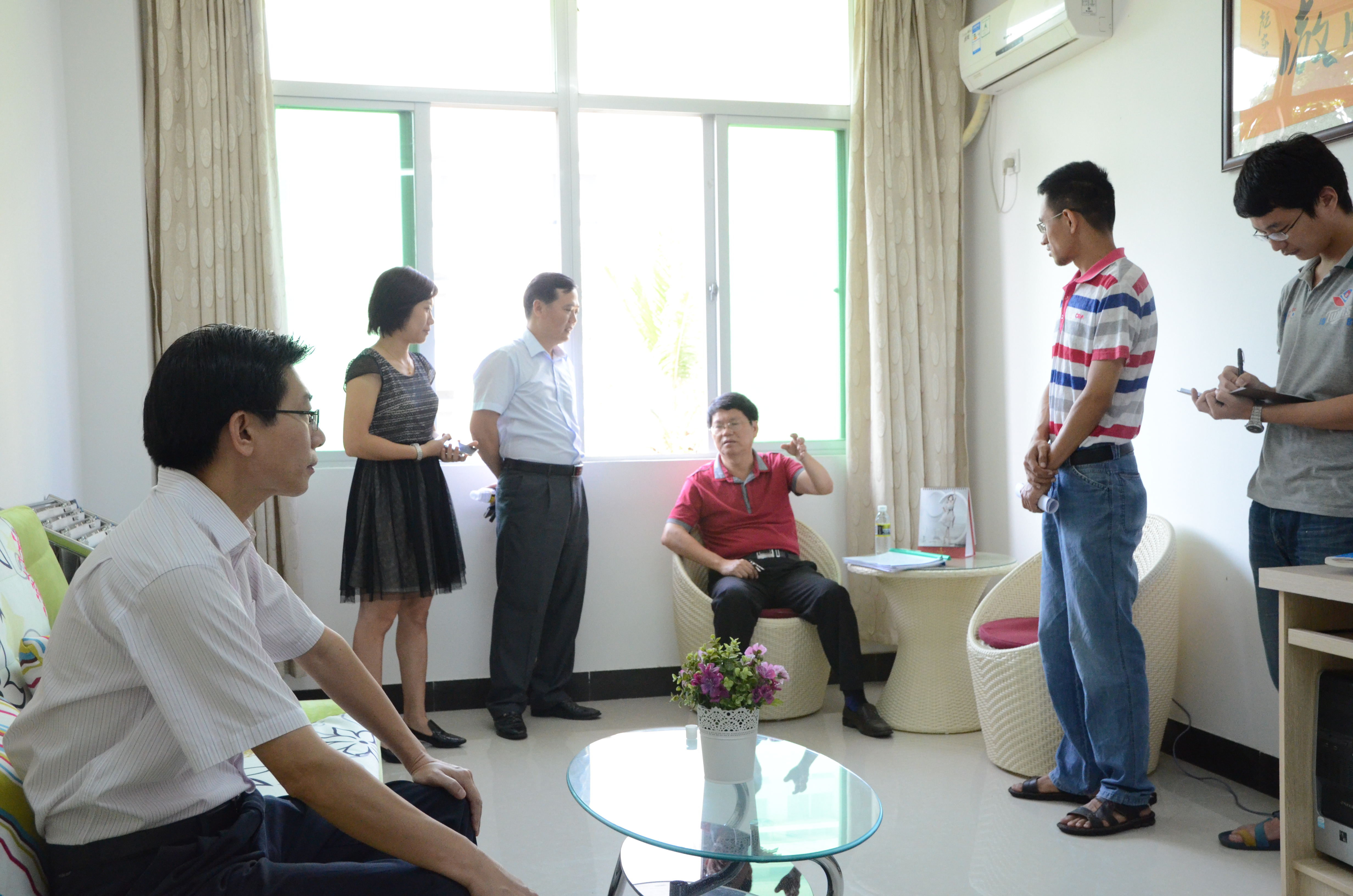 在装修布置一新的心理工作室里,陈封椿副书记查看和体验了各项办公设施、听取学院负责人汇报、了解建设情况。他为学生工作部投入经费、指导学院并与学院共建心理工作室,为学院拥有一个符合开展大学生心理健康教育工作需要的场地而感到满意。
