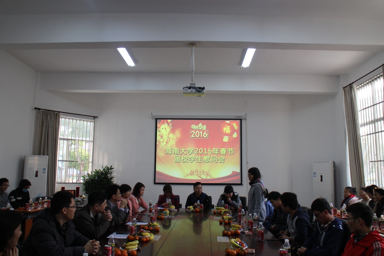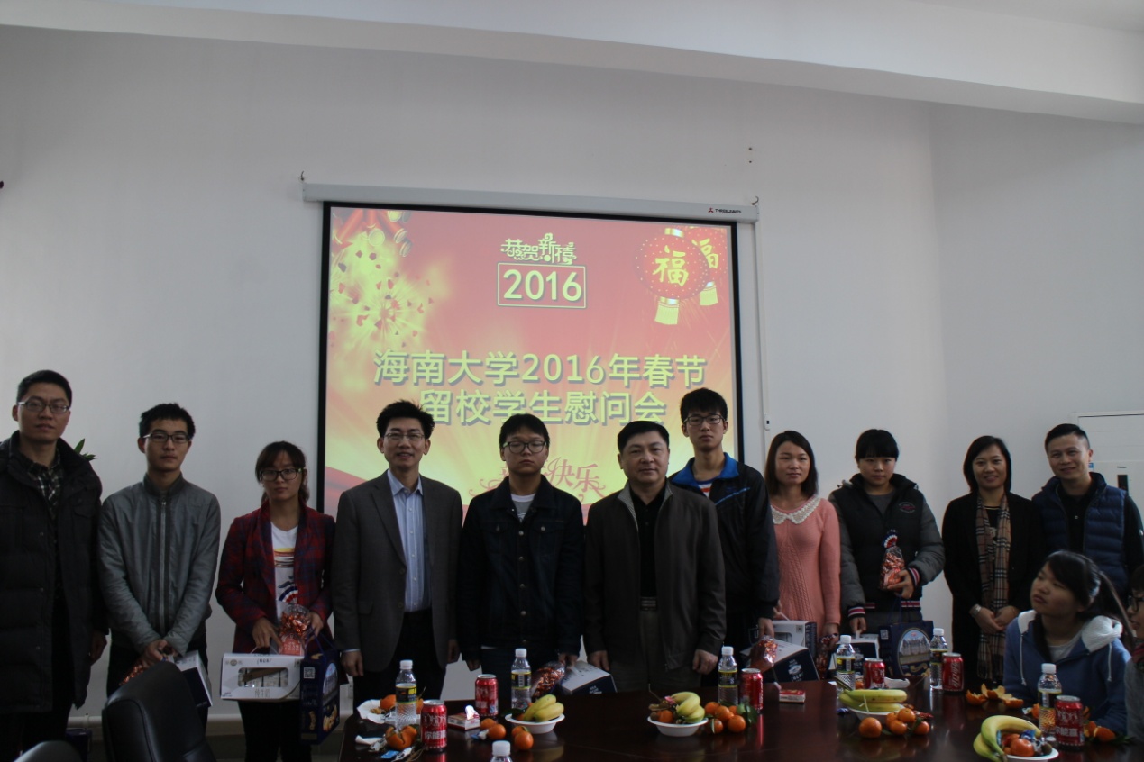 座谈会上,同学们畅所欲言,纷纷介绍了自己不回家过年的原因,并感谢学校对他们的关心和鼓励,一定会在海大这个温暖的家庭里度过一个快乐而又有意义的春节。最后,何忠平校长与到场各职能部门、学院分管学生工作领导为每一位学生发放了新春礼物,并祝同学们新年快乐,学习进步!