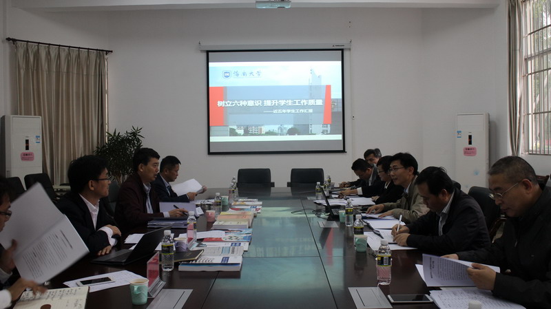 学生工作部(处)符成彦部长从学生工作基本情况、理念与思路、措施与做法、成效与特色、问题与改进等五个方面做了全面详细的工作汇报。韩力光副部长、俞花美副部长、陈楠昕副部长分别就心理健康教育、学生资助、学生宿舍管理、城西校区学生管理等工作做了补充汇报。在座学生工作部成员还就学生精准资助、学生住宿条件、心理咨询、学生活动组织等问题做了发言。 党办陈明宝主任、黎雨苗老师一起参加调研。 (文:林勇/图:郝平平)