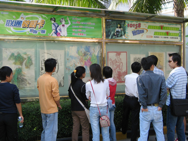 此次书画展规模盛大,在宣传栏里展示的作品有一百多件,全是出自全院书画爱好者之手,包括软笔,硬笔,水彩画,剪纸等。高质量的作品引来了很多同学驻足观看,也赢得了各兄弟学院的老师,同学们的赞许和认可。