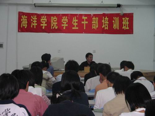 12月2日下午6:00,在海洋学院报告厅举行了海洋学院学生干部培训班讲座之一。学生处王大群处长就“如何树立学生干部形象及学生干部的工作方法和活动的筹划开展”做了专题讲座。
