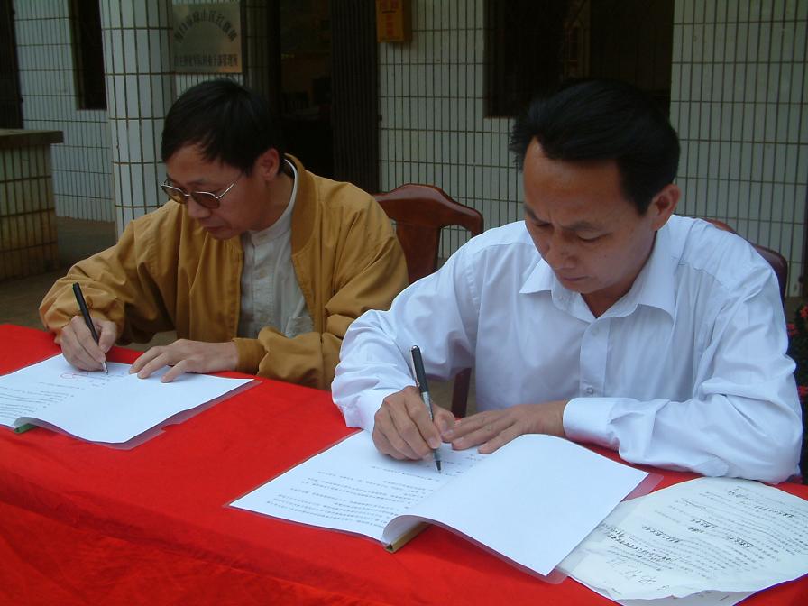 红旗镇欧辉富镇长和政治与公共管理学院党总支王默忠书记分别在协议书上签字