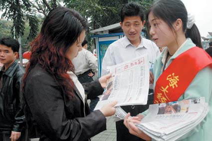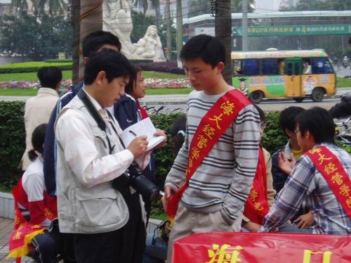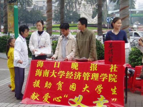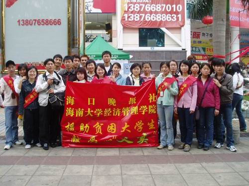 3月19日周末,我院与海口晚报社、海口明珠广场、东方广场合作开展了一次特殊的志愿者服务活动。海口晚报社免费提供了千余份报纸,我院团委组织百余名青年志愿者分别在海口明珠广场、东方广场及海大校园内发起援助贫困大学生的献爱心“义卖”活动。同学们的行为得到了市民和社会赞许,晚报记者也捐出50元,最后我院团委将卖报取得的584.5元人民币全部捐献给贫困大学生。