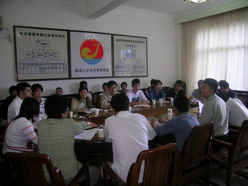 2005年3月21日下午,经济管理学院在学院会议室召开预评估紧急动员大会,党总支书记符史岱、全体学工办老师、教学部主任曾玉蓉老师、各班班长参加了此次会议。